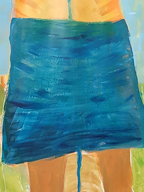 As I continued, it felt like she was going to sink below the surface. I used both the brush and my hands to get the paint to move properly. It became more physical than usual, as if my own movement went straight into the painting. The brush had to bring in the turquoise, and my hands helped her slide down. Finally she sank. Softly, exactly where she was going. Now she gets to rest there, below the surface, for a while.